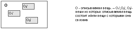 Еще один пример. Для описания некоторых вещей мы можем использовать свойство "адрес". Тем самым мы определяем, что данная вещь (например, человек, или фирма, или что-то еще) является адресуемой (в самом банальном смысле - ей можно послать письмо, или посмотреть по карте её местоположение). Информация о качестве "адрес" является результатом следующих связей между вещами: описываемая вещь находится в доме номер X расположенном на улицеY имеющейся в городе Z. Здесь "дом", "улица" "город" - это вещи, а "номер дома ", "название улицы", "имя города" - качества этих вещей. Свойство "адрес" является обобщением всех вышеперечисленных качеств всех вышеперечисленных вещей. Однако для того, что бы описать адресуемую вещь, нам совершенно не нужно описывать дома, улицы и города - надо просто знать адрес этой вещи. Существование этой информации позволяет сказать, что описываемая этой информацией вещь обладает способность к определенному взаимодействию - ей можно послать письмо, определить ее положение на карте и т.п. И в данном случае атрибут "адрес" не описывает строение реально существующих вещей, однако позволяет описать её способность к определенному взаимодействию с другими вещами.