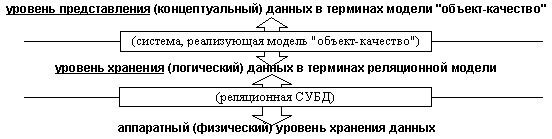 Модель "объект-качество", предлагаемая в этой статье, также основывается на ортогональности объектного подхода и реляционной модели. Ее можно рассматривать как Она позволяет описать данные в виде сложных идентифицируемых объектов и определяет переход от объектного представления этих данных к их реляционному хранению.