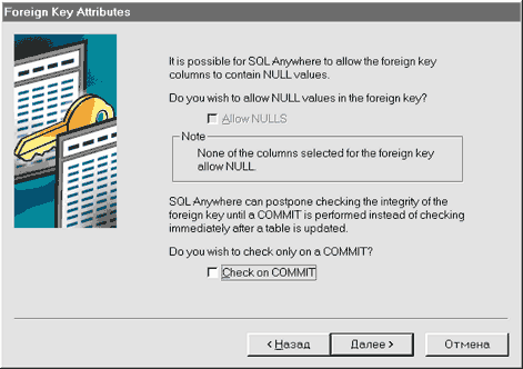 В нашем случае нет необходимости откладывать проверку ограничений целостности и поэтому оставим флажок Check on COMMIT в сброшенном состоянии.