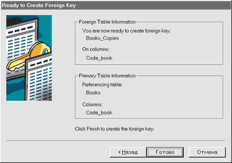Щелкните мышью по кнопке Готово для создания внешнего ключа.
