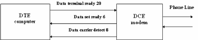 На схеме также изображено, так называемое "жесткое" управление соединением (Hardware Hadshaking), которое должно быть выбрано для управления модемом при его настройках. Принимающий вызовы модем должен быть сконфигурирован таким образом, чтобы он сам снимал трубку (ats0=5). Если кроме приема звонков от удаленных компьютеров телефон используется еще и как обычный телефон, то значение регистра s0 надо установить побольше.