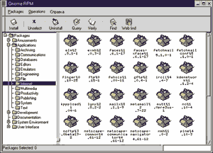 Главным козырем RedHat является менеджер пакетов RPM. Некоторые специалисты считают, что именно благодаря этой программе компания RedHat сделала себе имя. RPM предназначен для установки, обновления, верификации и удаления приложений из системы. По каждому пакету RPM позволяет получить информацию о назначении, структуре и составе пакета, местонахождении документации и многом другом, а также определить, к какому пакету принадлежит тот или иной файл. Учитывая огромное количество программ для Linux, хорошая программа управления способна серьезно облегчить жизнь администратору. На мой взгляд, по своим возможностям RPM не имеет аналогов как среди некоммерческих, так и среди коммерческих ОС, включая Windows. Кстати, RPM сейчас используется не только в RedHat, но и в других дистрибутивах Linux. Комплекты оболочек GNOME и KDE содержат графические варианты RPM (см. Рисунок 1).