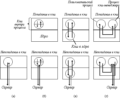 Рис. 3.11. Различные способы выполнения кэша в клиентской памяти