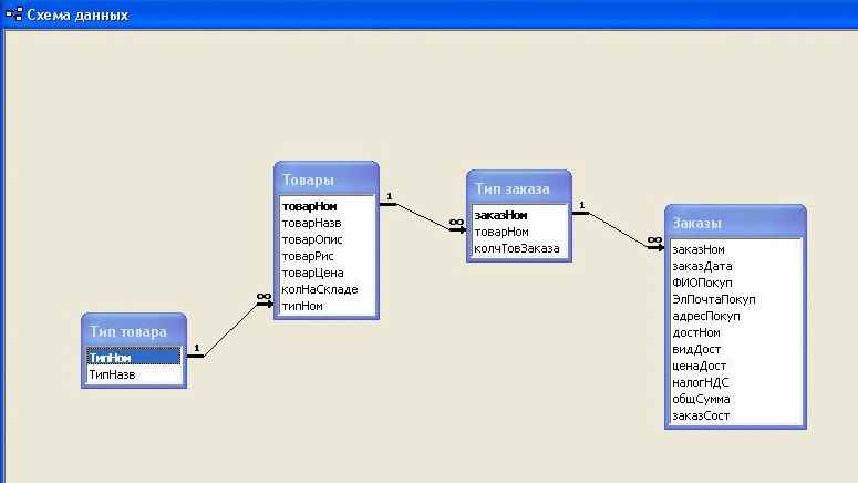 и «Товары» имеют связь 1:∞