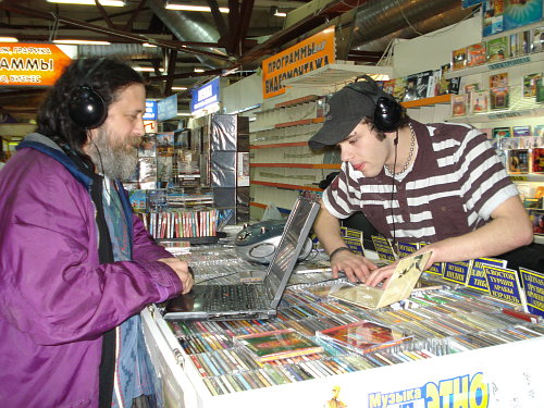 Ричард Столлман – большой любитель настоящей фолк-музыки. Ему очень хотелось купить в Москве записи истинной русской народной музыки, и вечером ему это частично удалось сделать в Горбушкином дворе.