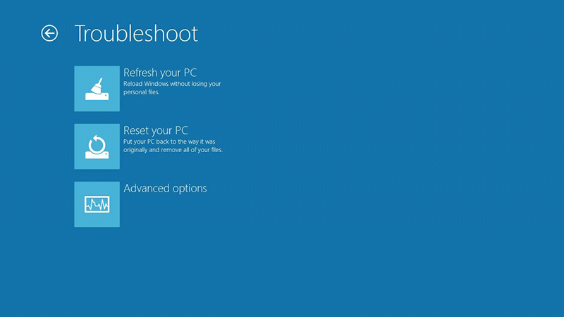 Инструменты доступны уже в Developer Preview в общем разделе настроек ПК и вызываются кнопками с соответствующими названиями. Обе функции исполняются в окружении Windows Recovery Environment (Windows RE). Сброс осуществляет процедуру форматирования партиций, на которых дислоцирована Windows и личные данные пользователя и автоматически устанавливает чистую копию ОС. Есть два режима сброса: полный, занимающий несколько часов и включающий процедуру затирания неиспользуемого дискового пространства (вроде команды cipher), и быстрый, выполнение которого происходит в считанные минуты, но не даёт пользователю уверенности, что данные будет невозможно восстановить.