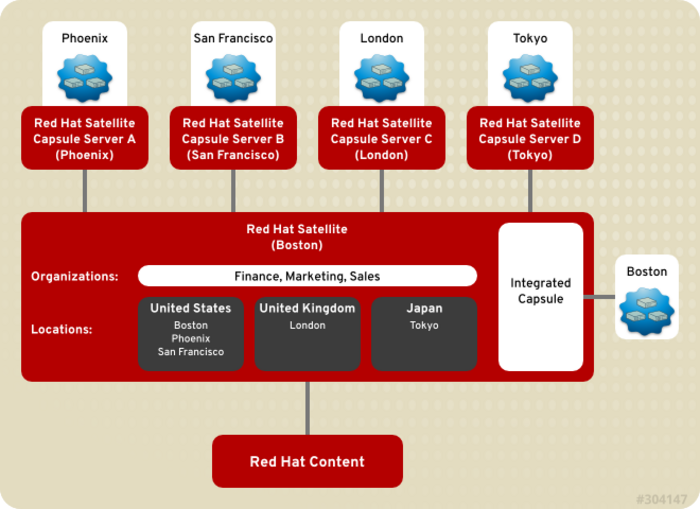 - Capsule - сервисы с реализацией некоторых первичных функций Satellite, включая организацию работы с хранилищем, DNS, DHC и конифигурациями в Puppet. Capsule может выступать в роли прокси или предоставлять интегрированные в Satellite Server сервисы.