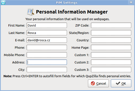 - Поставка плагина PIM (Personal Information Manager) с реализацией системы управления персональной информацией, используемой для автоматизации заполнения персональных данных в web-формах (например, заполнение ФИО, email и т.п.);