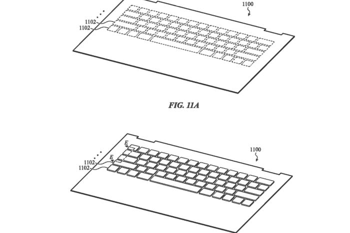 Опубликованная в четверг Ведомством по патентам и товарным знакам США патентная заявка под названием «Компьютер с клавиатурой» описывает клавиатуру без перемещающихся компонентов.