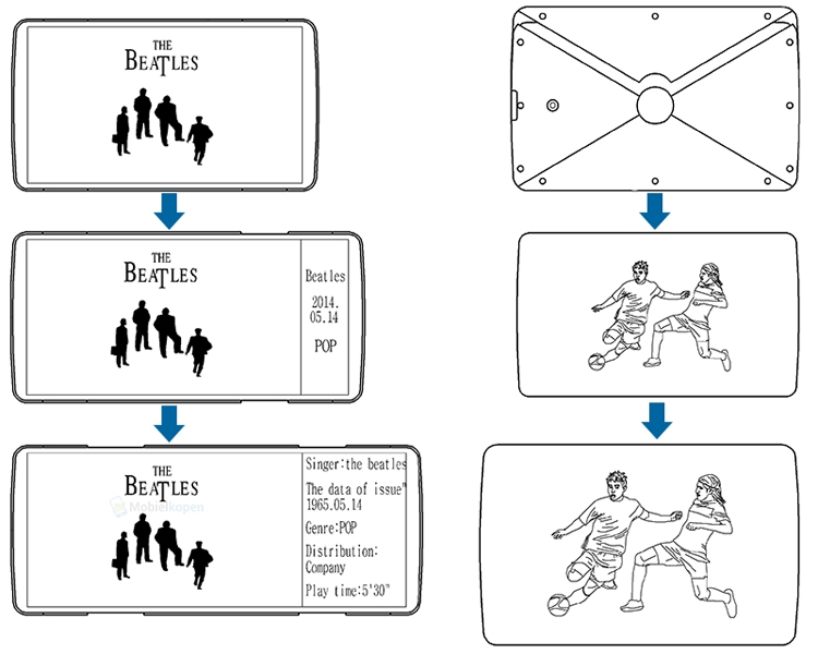 Специальная конструкция позволит пользователям увеличивать полезную площадь сенсорной панели путём растягивания устройства. Причём, как можно видеть на иллюстрациях, изменять размер дисплея можно будет как по горизонтали, так и по вертикали.