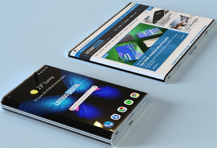 Как можно видеть на рендерах, созданных ресурсом LetsGoDigital на основе опубликованной информации, аппарат будет сгибаться по вертикали в центральной области — подобно книге.