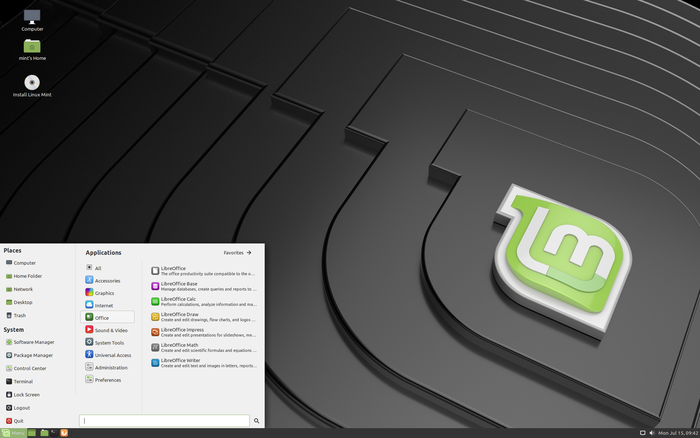 - В состав включены версии десктоп-окружений MATE 1.22 и Cinnamon 4.2, оформление и организация работы в которых продолжает развитие идей GNOME 2 - пользователю предлагается рабочий стол и панель с меню, областью быстрого запуска, перечнем открытых окон и системным лотком с запущенными апплетами. Cinnamon основан на GTK3+ и технологиях GNOME 3. Проект развивает оболочку GNOME Shell и оконный менеджер Mutter в направлении предоставления окружения в стиле GNOME 2 с более современным оформлением и задействованием элементов из GNOME Shell, дополняющих средства классического десктопа. MATE продолжает развитие кодовой базы GNOME 2.32 и полностью избавлен от пересечений с GNOME 3, что позволяет использовать традиционный рабочий стол GNOME 2 параллельно с рабочим столом GNOME 3.