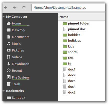 - В файловом менеджере Nemo добавлена возможность закрепления избранных каталогов и файлов в верхней части списка.