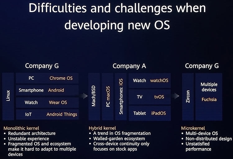 Руководитель потребительского подразделения Huawei Ричард Ю (Richard Yu) пояснил взгляды компании на эту ОС: «Мы вступаем в эпоху, когда люди ожидают целостного интеллектуального опыта для всех устройств и сценариев. Мы чувствуем, что важно иметь операционную систему с улучшенными кроссплатформенными возможностями. Нам нужна ОС, поддерживающая любые сценарии, которые могут использоваться на широком спектре устройств и платформ и которые могут удовлетворить потребительский спрос на быстрый отклик и надёжную защиту.