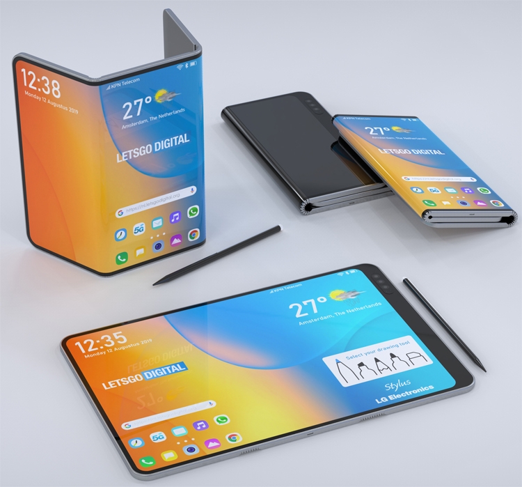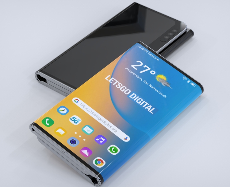 Речь идёт об аппарате двойного складывания. Ресурс LetsGoDigital уже опубликовал рендеры устройства, созданные на основе патентных изображений.