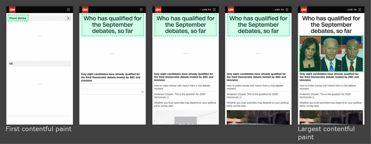 - Добавлены новые метрики для оценки скорости загрузки и отрисовки контента в браузере, позволяющие web-разработчику определить как быстро основное содержимое страницы становится доступной для пользователя. Предлагавшиеся ранее средства контроля отрисовки позволяли судить лишь о самом факте начала отрисовки, но не о готовности страницы в целом. В Chrome 77 предложен новый API Largest Contentful Paint, позволяющий узнать время отрисовки крупных (заметных пользователю) элементов в видимой области, таких как изображения, видео, блочные элементы и фон страницы;