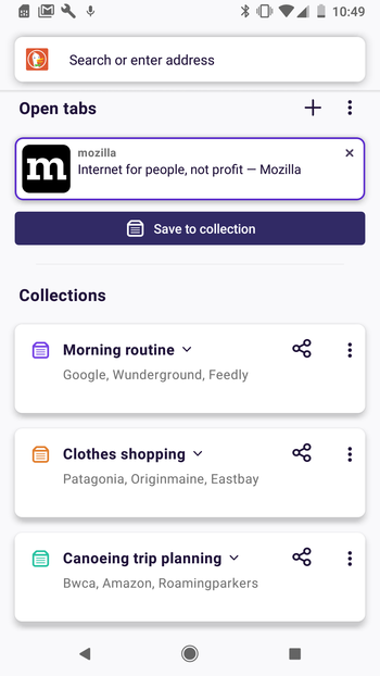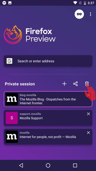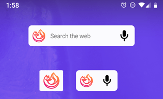 - Появилась возможность размещения поискового виджета Firefox Preview на домашнем экране, а также добавления на домашний экран кнопки для открытия режима приватного просмотра и ярлыков для быстрого открытия сайтов;