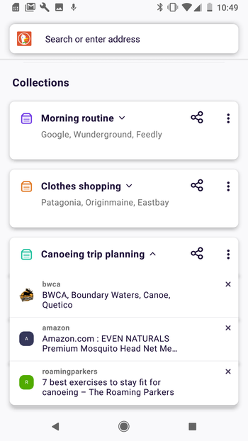 - Применение вместо вкладок концепции коллекций, позволяющих сохранять, группировать и обмениваться избранными сайтами.