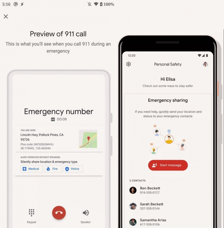 Как всё это работает? Google утверждает, что Personal Safety использует данные о местоположении, датчики движения и окружающие звуки с микрофона Pixel, чтобы выяснить, произошла ли авария. Возможно, автоматика определяет звук разбитого стекла или столкновения по аналогии с тем, как Alexa Guard распознаёт взломы по звуку. Работает это всё наверняка локально, так что личные данные пользователя не будут постоянно отправляться на сервер. Но компания также предупреждает, что могут быть и случайные обнаружения автокатастроф: тогда пользователям придётся нажать в приложении на кнопку «Я в порядке», чтобы прервать ложный экстренный вызов. После подтверждения Personal Safety спросит, что произошло, и пользователь сможет указать, ошиблось ли приложение и насколько — чтобы повысить точность работы технологии в будущем.