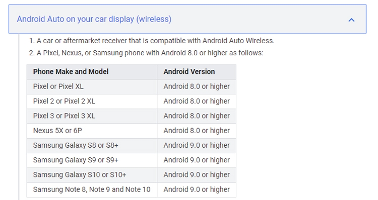 На сайте Google в разделе «Начало работы с Android Auto» появился обновлённый перечень устройств, совместимых с функцией Android Auto Wireless. В него включён ряд аппаратов Samsung.