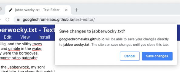 - API Native File System, позволяющий создавать web-приложения, взаимодействующие с файлами в локальной ФС. Например, новый API может быть востребован в запускаемых в браузере интегрированных средах разработки, редакторах текста, изображений и видео. Для получения возможности прямой записи и чтения файлов, использования диалогов для открытия и сохранения файлов, а также для навигации по содержимому каталогов, приложение запрашивает у пользователя специальное подтверждение;