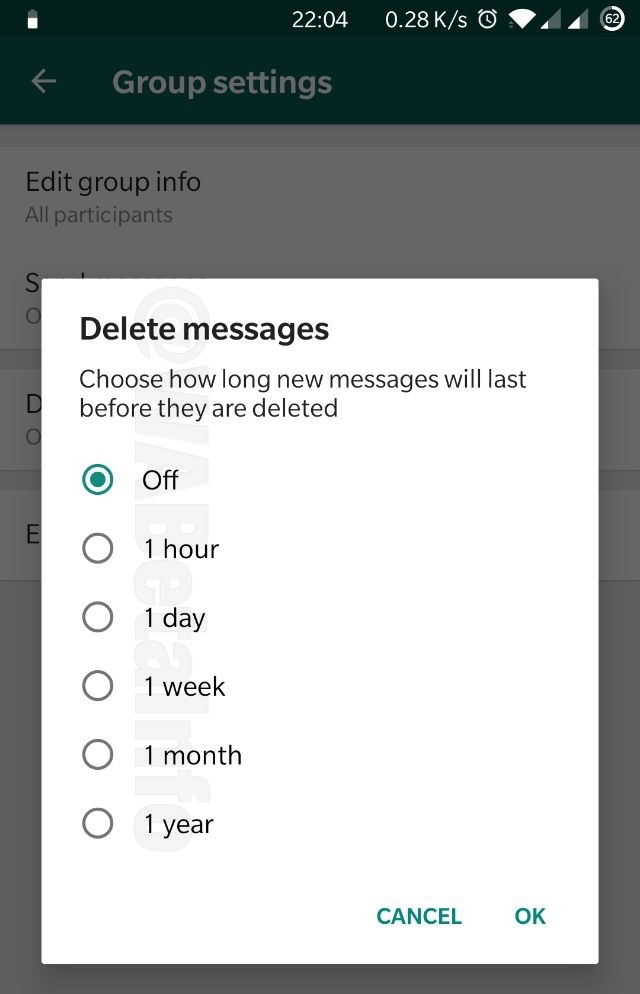 Данный инструмент станет доступен для групповых чатов, в которых обычно скапливается большое количество сообщений. Автоматическое удаление старых сообщений выглядит весьма полезной функцией, поскольку с её помощью пользователи смогут экономить дисковое пространство, не прилагая для этого каких-либо усилий. Использовать новую функцию смогут администраторы групповых чатов, которые будут выбирать, через какое время сообщения должны удаляться. Очевидно, для обычных участников групповых чатов данная функция будет недоступна.