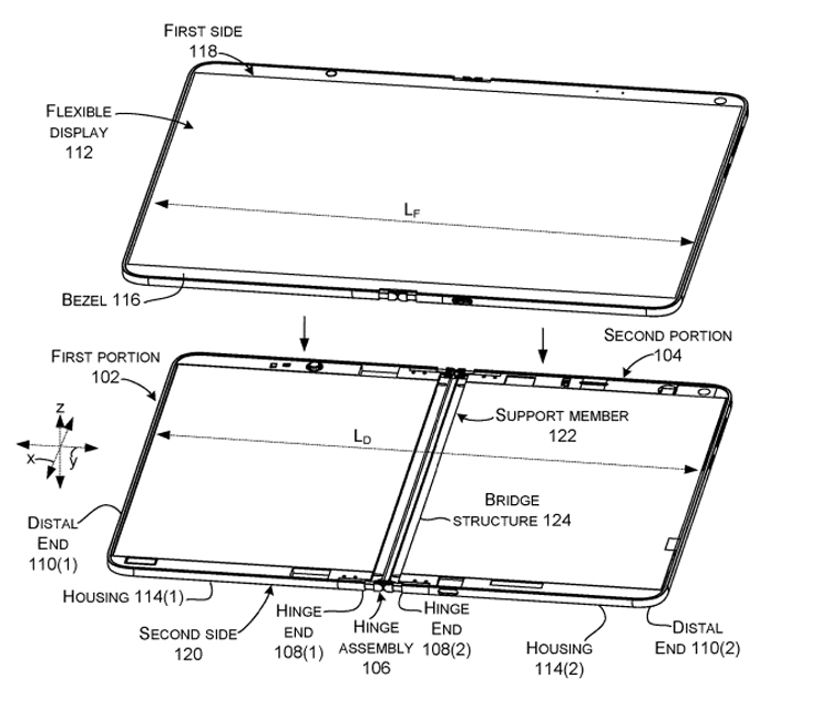 Информация о гаджете опубликована на сайте Управления США по патентам и торговым маркам (USPTO). Документ носит лаконичное название «Устройство с шарнирным соединением» (Hinged device).