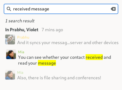 - Расширенные средства поиска сообщений и фильтрации вывода в истории переписки;