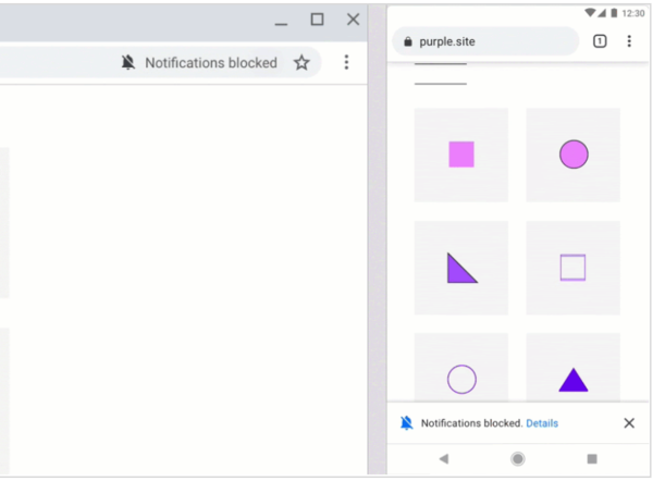 - Добавлена защита от назойливых уведомлений, связанных с подтверждением полномочий. Так как подобная активность, например, спам запросами на получение push-уведомлений, прерывает работу пользователя и отвлекает внимание на действия в диалогах подтверждения, в Chrome 80 вместо отдельного диалога, в адресной строке теперь может отображаться информационная подсказка с предупреждением о блокировке запроса полномочий, которая затем сворачивается в индикатор с изображением зачёркнутого колокола. При клике на индикатор можно активировать или отклонить запрошенное полномочие в любой удобный момент. Автоматически новый режим будет выборочно включаться для пользователей, которые до этого обычно блокировали подобные запросы, а также для сайтов, на которых фиксируется большой процент отклонения запросов. Для включения нового режима для всех запросов в настройки добавлена специальная опция (chrome://flags/#quiet-notification-prompts).