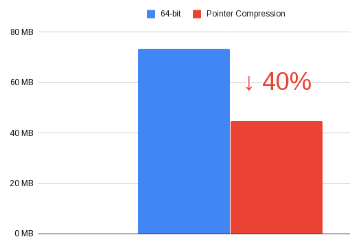 - В JavaScript-движке V8 проведена оптимизация хранения указателей в куче. Вместо полного 64-разрядного значения обеспечено хранение только уникальных нижних битов указателя. Подобная оптимизация позволила сократить потребление памяти в куче на 40%, ценой снижения производительности на 3-8%.