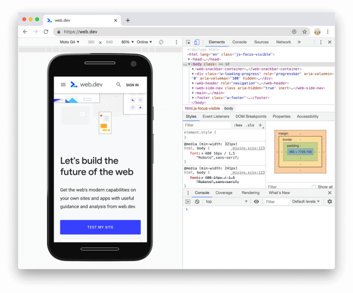- В панель Device добавлена симуляция экрана смартфона Moto G4.