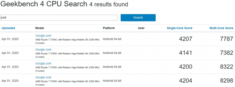Речь идёт об устройстве с кодовым названием Google Zork, о котором сообщали и прошлогодние слухи. Предполагается, что за этим именем скрывается некий гибридный мобильный компьютер семейства Pixelbook. Данное устройство в начале этого месяца было неоднократно протестировано в тестах Geekbench 4 и 5.