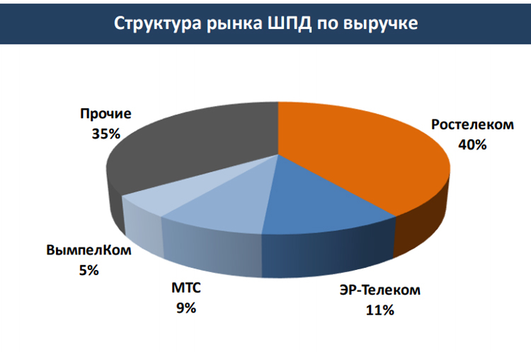 Крупнейшим российским ШПД-оператором является «Ростелеком». По итогам 2019 года доля этой компании составила 36 % по числу абонентов и 40 % по размеру выручки. На втором месте находится «ЭР-Телеком» с результатом в 12 % и 11 % соответственно. Замыкает тройку МТС — 10 % и 9 %. «ВымпелКом», находящийся на четвёртом месте, обслуживает 8 % от общего количества ШПД-абонентов в России и контролирует 5 % рынка в плане выручки.