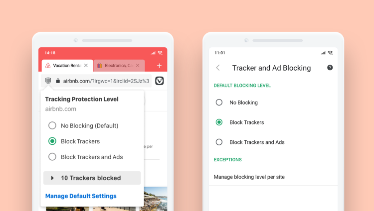 Ещё в браузере имеется встроенный блокировщик рекламного контента и веб-трекеров, с помощью которых некоторые сайты отслеживают пользовательскую активность. Его основой стал инструмент Tracker Radar от разработчиков из DuckDuckGo (он же используется в представленной сегодня десктопной версии Vivaldi 3.0).