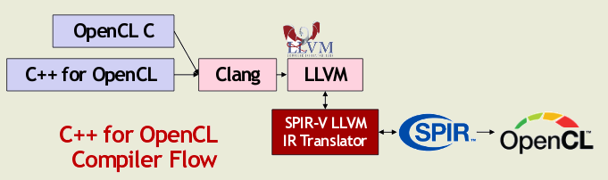 - Спецификация расширений параллельного программирования для языка Си обновлена до версии 3.0, а развитие языковых расширений OpenCL для C++ прекращено в пользу проекта "C++ for OpenCL". C++ for OpenCL представляет собой компилятор, основанный на Clang/LLVM и транслирующий ядра на C++ и OpenCL C в промежуточное представление SPIR-V или низкоуровневый машинный код. Через трансляцию в SPIR-V также организована сборка С++ приложений, использующих библиотеку шаблонов SYCL, упрощающую создание параллельных приложений.