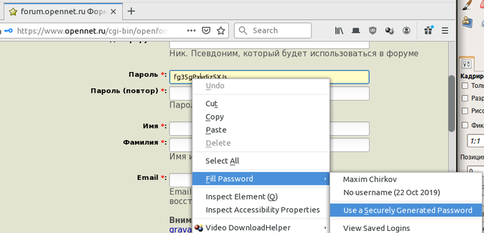 Расширено число сайтов для которых применяется функция автоматической генерации надёжных паролей при заполнении форм регистрации. Ранее подсказка с предложением надёжного пароля выводилась только при наличии полей <input type="password"> с атрибутом "autocomplete = new-password". Независимо от используемого сайта пароль может быть сгенерирован через контекстное меню.