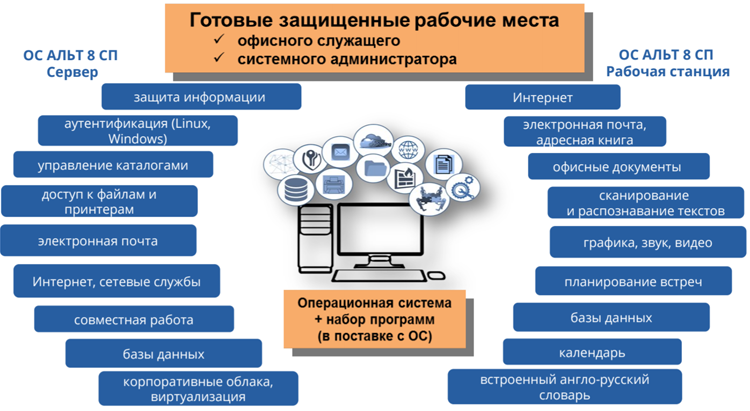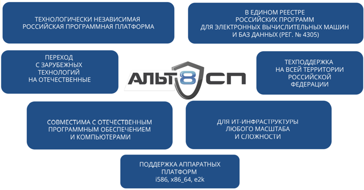 Операционная система «Альт 8 СП» включена в реестр отечественного ПО как рекомендованная для закупки российскими организациями и госструктурами. Платформа выпускается компанией ИВК на базе инфраструктуры разработки «Базальт СПО».