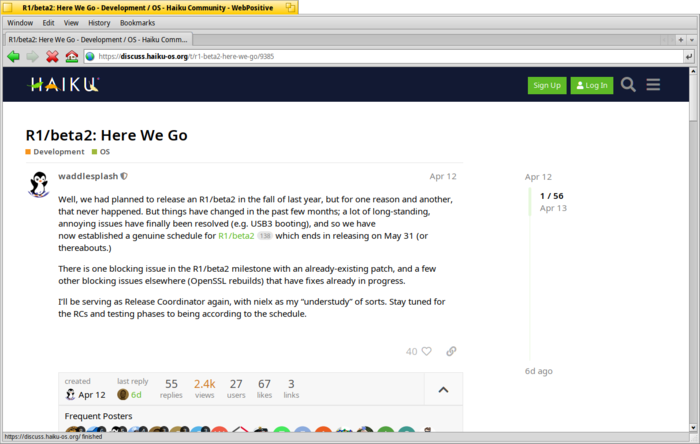 - Обновлён web-браузер WebPositive, который переведён на новый выпуск движка WebKit и оптимизирован для снижения потребления памяти.