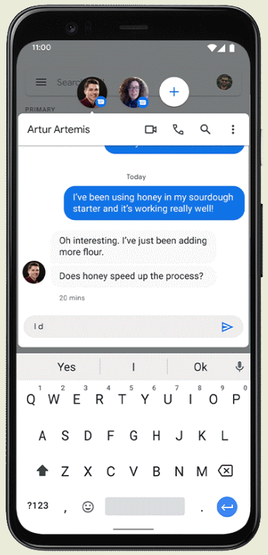 Активирована концепция "пузырей", всплывающих диалогов для выполнения действия в других приложениях не покидая текущей программы. Например, при помощи пузырей можно продолжать беседу в мессенджере, быстро отправлять сообщения, держать на виду список задач, вести заметки, обращаться к сервисам перевода и получать наглядные напоминания, параллельно c работой в других приложениях.