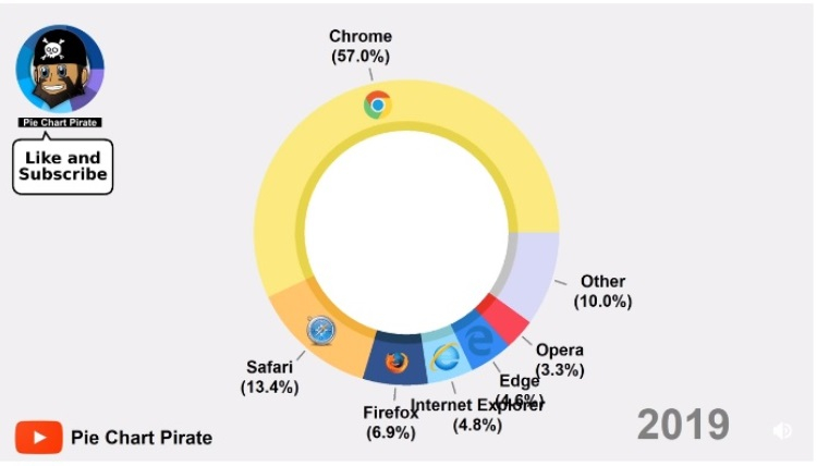 Несмотря на то, что изначально веб-обозреватели создавались для ПК, последние годы они развиваются в сторону кроссплатформенности, благодаря чему пользовательские данные синхронизируются на разных устройствах. Опубликованное пользователем Reddit видео показывает не только рост, но и упадок некоторых громких имён, таких как Internet Explorer и Mozilla Firefox.
