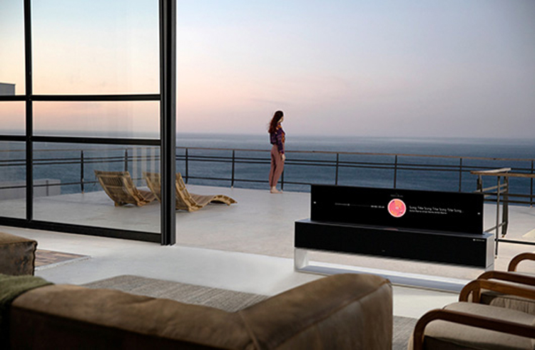 Телевизор выполнен в виде прямоугольного параллелепипеда, внутри которого спрятан скручивающийся гибкий дисплей. Панель имеет размер 65 дюймов по диагонали и обладает разрешением 4К (3840 × 2160 пикселей). Частота обновления достигает 120 Гц.