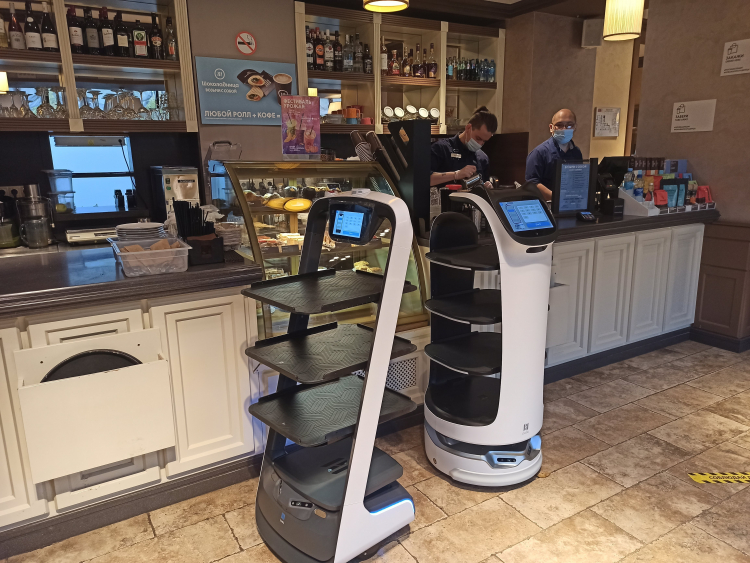 С 30 октября в двух заведениях сети кофеен «Шоколадница» обслуживать посетителей будут роботы-официанты. Внешне роботы напоминает этажерку с полками для подносов. Операционный директор ГК «Шоколадница» Юрий Владыкин рассказал ресурсу Forbes, что роботы будут помогать официантам — доставлять гостям заказы, просить их взять посуду с соответствующего подноса и отвозить грязную на мойку. Он сообщил, что средняя стоимость робота с учётом ПО составляет $12 000.