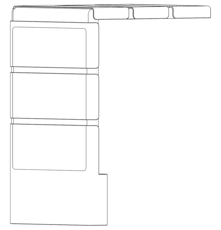 Такое конструктивное исполнение позволит сгибать устройство в нескольких местах, реализуя различные режимы использования. К примеру, можно будет либо полностью закрыть экран, либо оставить видимой его небольшую часть для просмотра уведомлений и полезной информации.
