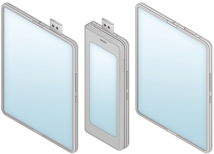 Большой гибкий экран будет складываться внутрь корпуса, что защитит его от повреждений во время повседневного ношения. У этой панели нет ни выреза, ни отверстия для камеры — селфи-блок будет выполнен в виде выдвижного модуля, прячущегося в верхней части корпуса. Он получит два датчика изображения.