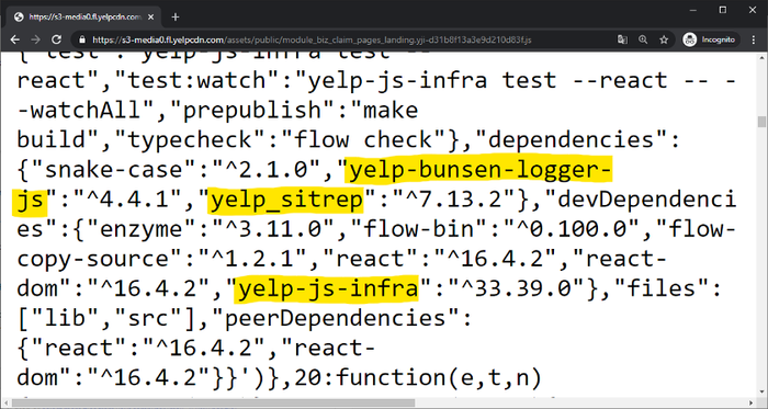 случайно обратил внимание, что в публикуемом на GitHub общедоступном коде многие компании не очищают из manifest-файлов упоминание дополнительных зависимостей, применяемых во внутренних проектах или при реализации расширенной функциональности. Подобные следы были найдены в JavaScript-коде web-сервисов, а также Node.JS, Python и Ruby проектах многих компаний. Основные утечки были связаны со встраиванием содержимого файлов package.json в публично доступный JavaScript-код в процессе сборки проекта, а также использованием элементов реальных путей в вызовах require(), по которым можно судить об именах внутренних зависимостей.