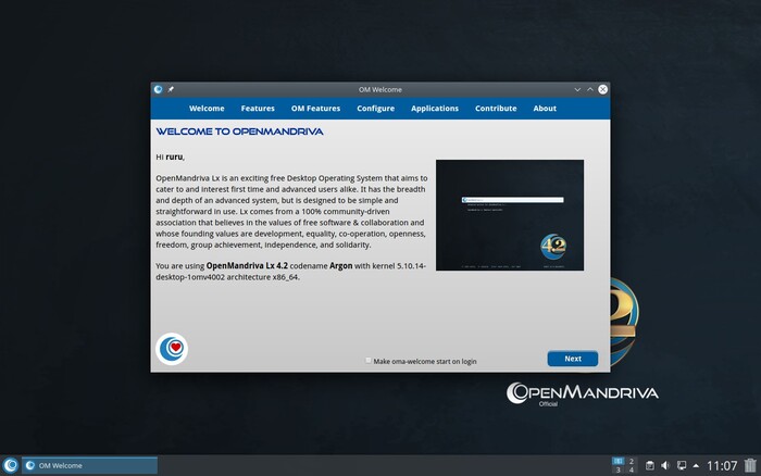 - Усовершенствовано приложение OM Welcome, предназначенное для первичной настройки и ознакомления пользователя с системой, в котором появилась возможность быстрой установки типовых дополнительных программ, не входящих в базовую поставку.