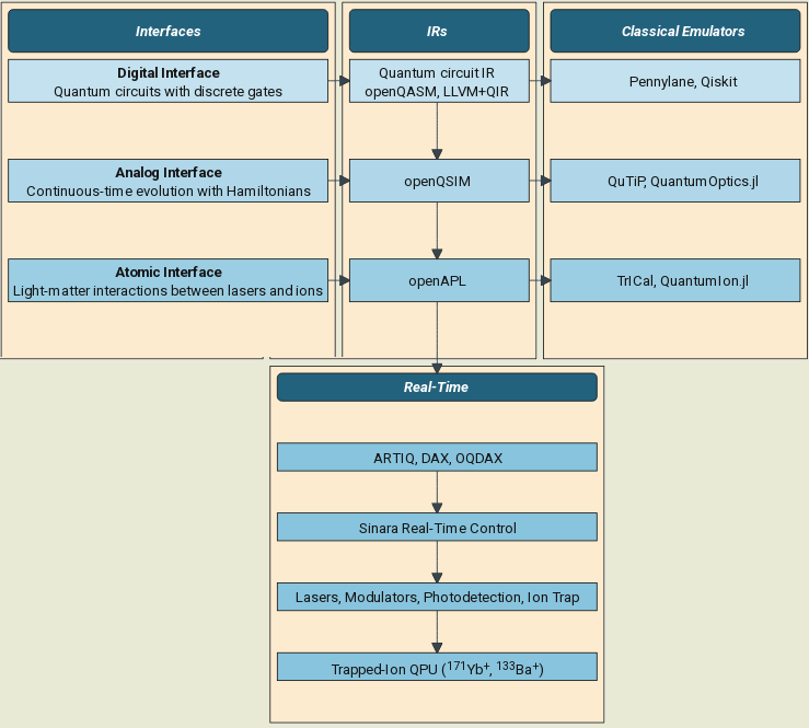 Аппаратная реализация квантового компьютера находится на стадии сборки и тестирования. Схемы и проектные файлы, необходимые для сборки аналогичной системы, будут открыты в соответствии с принципами Open Hardware под лицензией близкой к Apache 2.0. При разработке задействованы наработки существующих открытых проектов в области квантовой физики, таких как платформа для проведения экспериментов с квантовыми системами ARTIQ (Advanced Real-Time Infrastructure for Quantum physics) и аппаратные решения от сообщества Sinara.