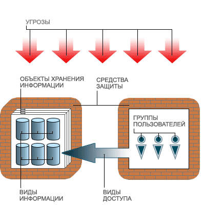 объекты ее хранения; группы пользователей и виды доступа к информации;